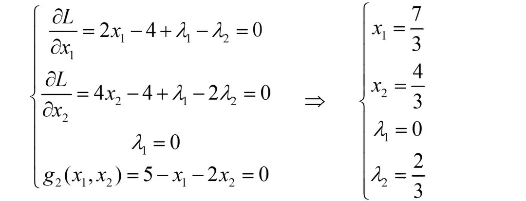 (2) 当 λ≠0 时,计算X*和λ的值,并验证g(X*)≤0和λ≥0是否成立。