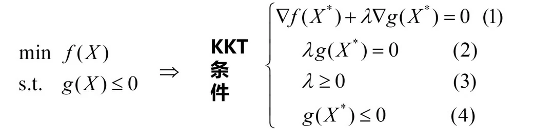 注:如果是最大化问题,即maxf(X),约束改写为g(X*)≥0的形式(原因后文会解释)。