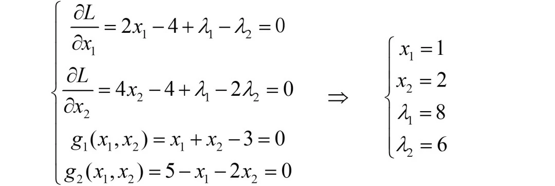该情形下的最优解就是求解三方程Equ=0,g1=0,g2=0下的p、λ1、λ2值。