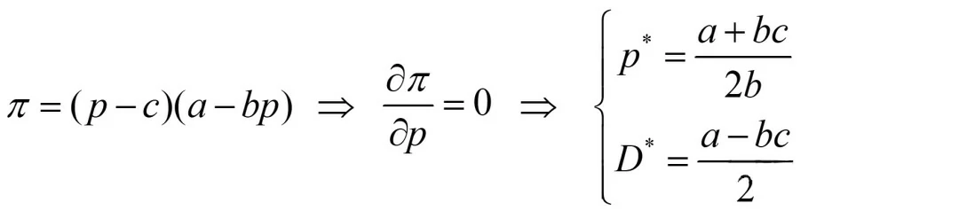 若企业生产成本为c的产品,市场需求函数为D = a - bp (a, b 是参数,p为价格),那企业的最优定价p为多少?