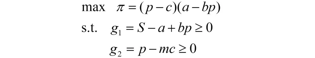 约束2(针对价格):企业规定价格不能低于m*c(m>1);