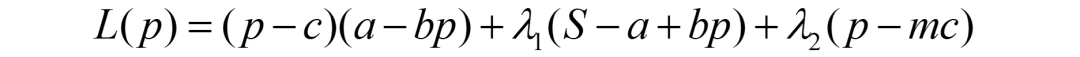 先给出无约束问题下的解,决策最优定价p;再给出含有两个不等式约束的最优定价决策。