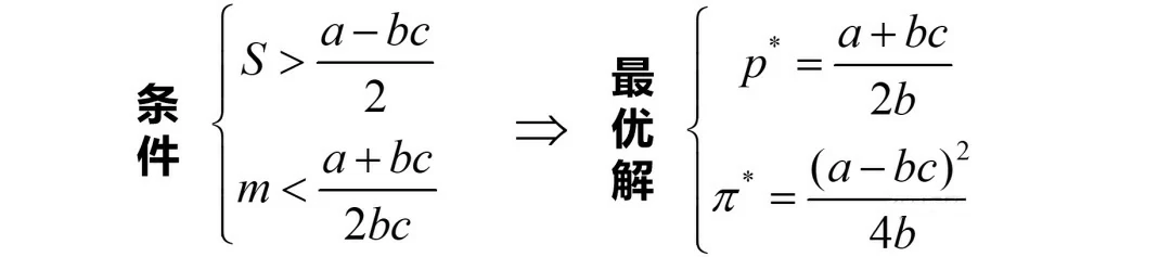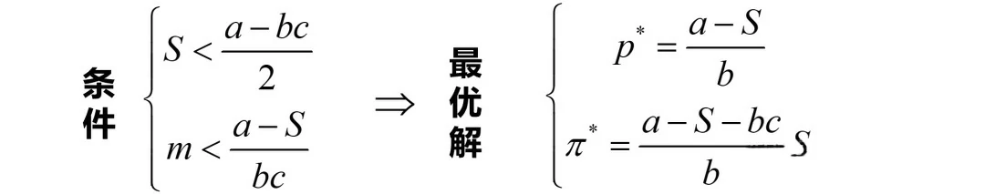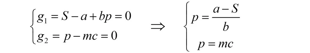 此时由于g1 = S-a+bp = 0,故最优解就是p* = (a-S)/b;将其带入利润函数,便得到最优利润表达式。