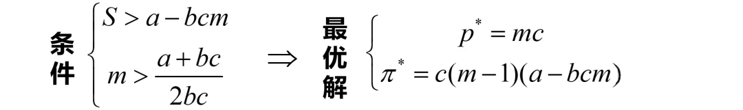 此时由于g2=p-mc=0,故最优解就是p*=mc;将其带入利润函数,便得到最优利润表达式。