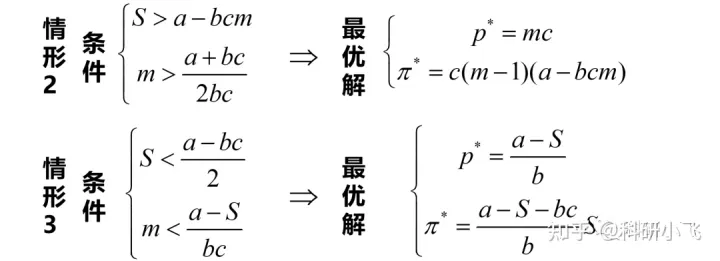 上述4种情形,3种情形均有最优解。很显然,工作还没做完,我们真正想得到的是哪些参数条件下,最优定价和最大利润是多少?