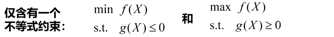 以仅含有一个不等式约束的情形为例,最小化和最大化的优化问题要整理成如下形式: