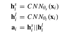 其中 CNN(xi) 是使用 CNN 将 30-s EEG epoch 转换为特征向量 的函数,θs和θl分别是第一层中具有小过滤器和大过滤器尺寸的 CNN 的参数,并且||是将两个 CNN 的输出组合在一起的连接操作。然后将这些连接或链接的特征 {a1, … , aN} 转发到序列残差学习部分。