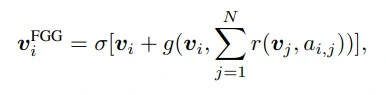 其中ReLU表示非线性激活。因此,具有强关联(高相似性)的一对AU将具有连接的节点。换句话说,FGG块强制AFG块编码节点(AU)特征,这些特征包含目标面部显示的AU之间的任务特定关系线索,以产生用于识别它们的最佳图。