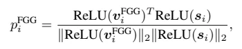 其中σ[]为非线性激活;g和r表示GCN层的可微函数,ai,j∈{0, 1}表示vi和vj之间的连通性。为了为第i个AU提供预测,作者提出了一种相似度计算策略(SC),该策略学习了一个与vi^FGG具有相同维度的可训练向量Si,然后通过计算vi^FGG与Si之间的余弦相似度来生成第i个AU的出现概率: