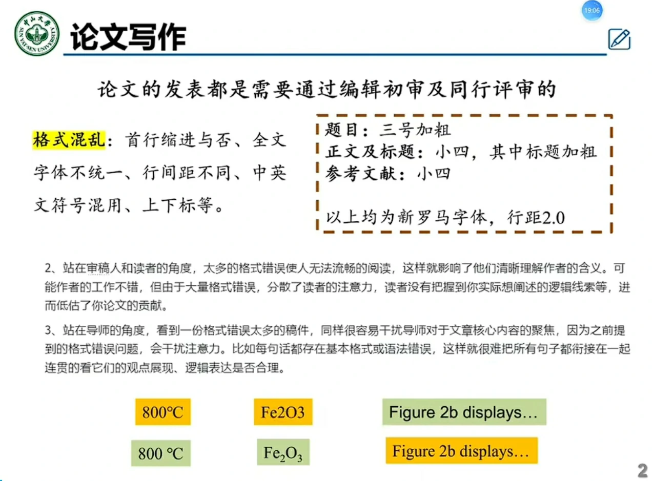 研究性论文写作中需要注意的几个问题包括格式混乱、图片质量低、逻辑松散、文字罗嗦、前后文矛盾等。同时,还分享了一些标准格式和写作技巧,如统一规范的字体和标点符号、后期处理图片提高清晰度等。最后,作者还提到了撰写综述的经验即抓住研究重点、避免重复和无出处的结论。总之为论文写作提供了有益的指导和建议。