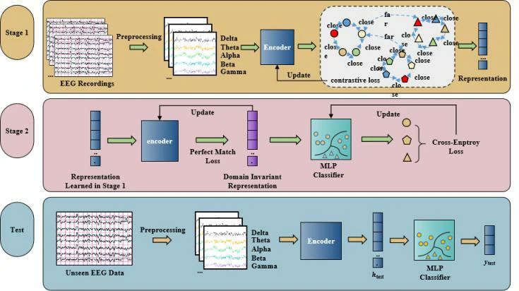 为解决这一难题,本研究提出了一种基于自监督对比域泛化(SSCDG)的意识评估框架。该框架通过学习健康个体的泛化特征,并与DOC患者的脑电数据进行比较,解码DOC患者对音乐刺激的神经反应。这种方法不仅提高了评估的准确性和可靠性,而且为DOC患者的临床诊断和治疗提供了新的视角。