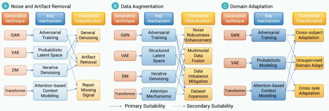 脑电/神经信号就像在嘈杂街头听到的低声耳语:本来就弱,还容易被各种“杂音”盖住;而且好数据难采、难标注,不同人、不同设备、不同状态下又各不相同。生成式AI提供了更系统的“听清 + 补全 + 迁移”方案:
