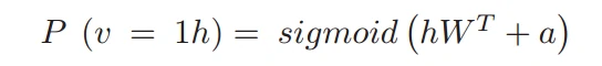 由于RBM的对称结构,可以得到隐藏层对于可见层的条件概率如下: