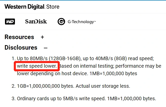 因此大家在购买存储卡时不仅需要关注“读速”,更应该关注“写速”。