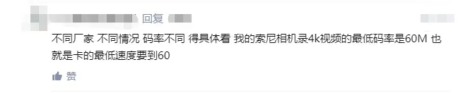 - 高写速的卡能够承受高码率的视频拍摄,低写速的卡拍高码率视频可能突然中断甚至直接不被允许拍摄(新手可以简单理解为高码率视频=高画质视频)