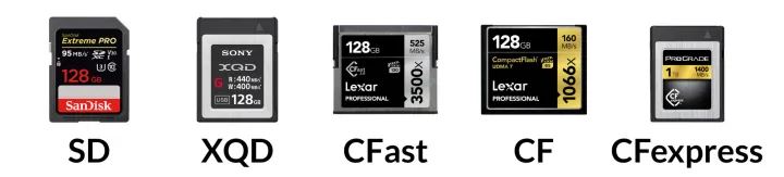 - 老玩家或许还记得CF卡和CFast卡。虽然它俩的名字和CFexpress卡一样都以CF开头,但它们并不是同一种卡!CF卡和CFast卡曾广泛用于老款的高端相机,但由于多重原因,未来应该不会再有支持这两种卡的新款相机了,新手不必去了解或购买。