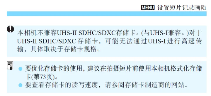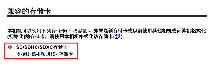- 注意不支持UHS-II卡,购买前确认自己存储卡的种类