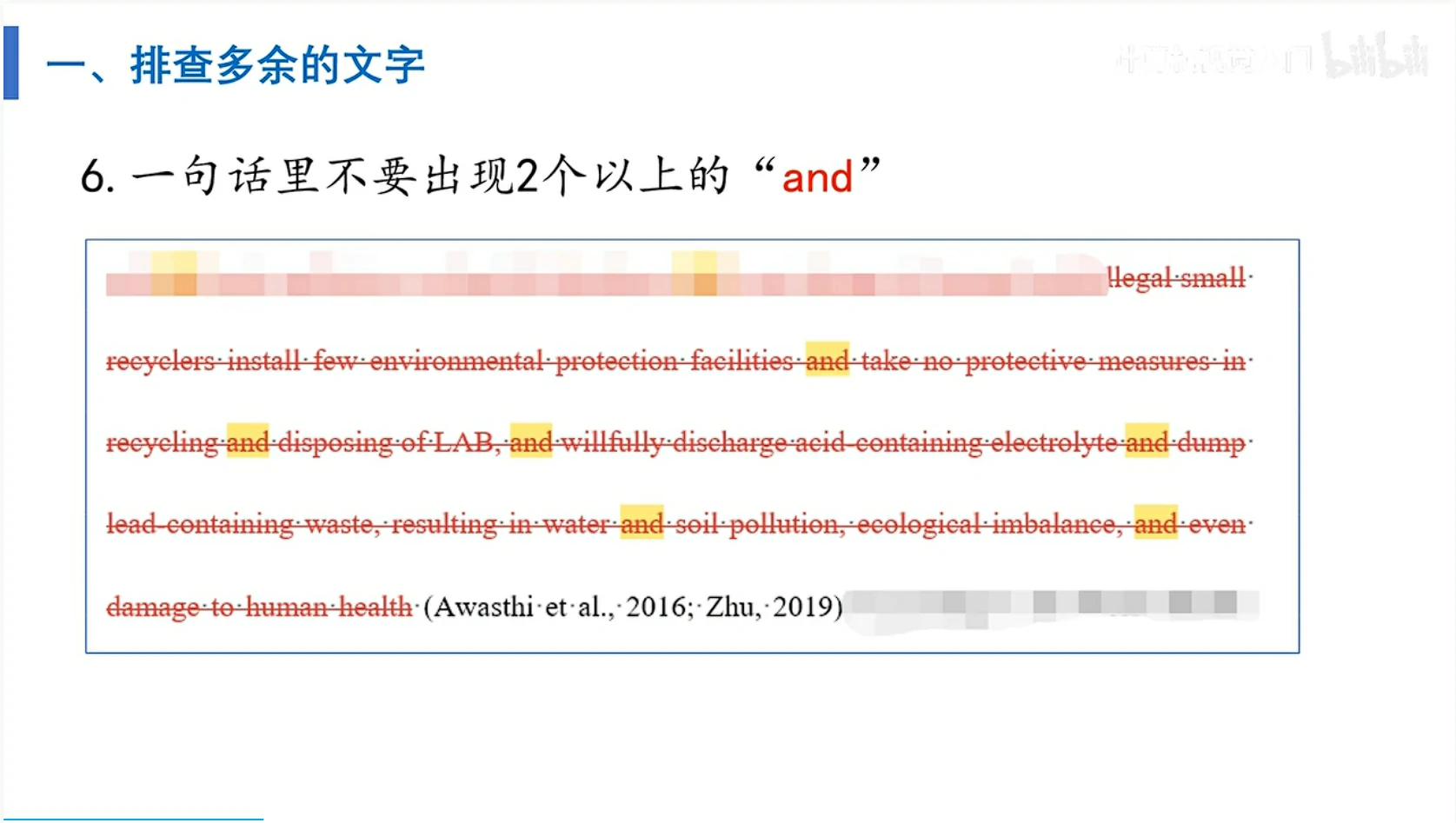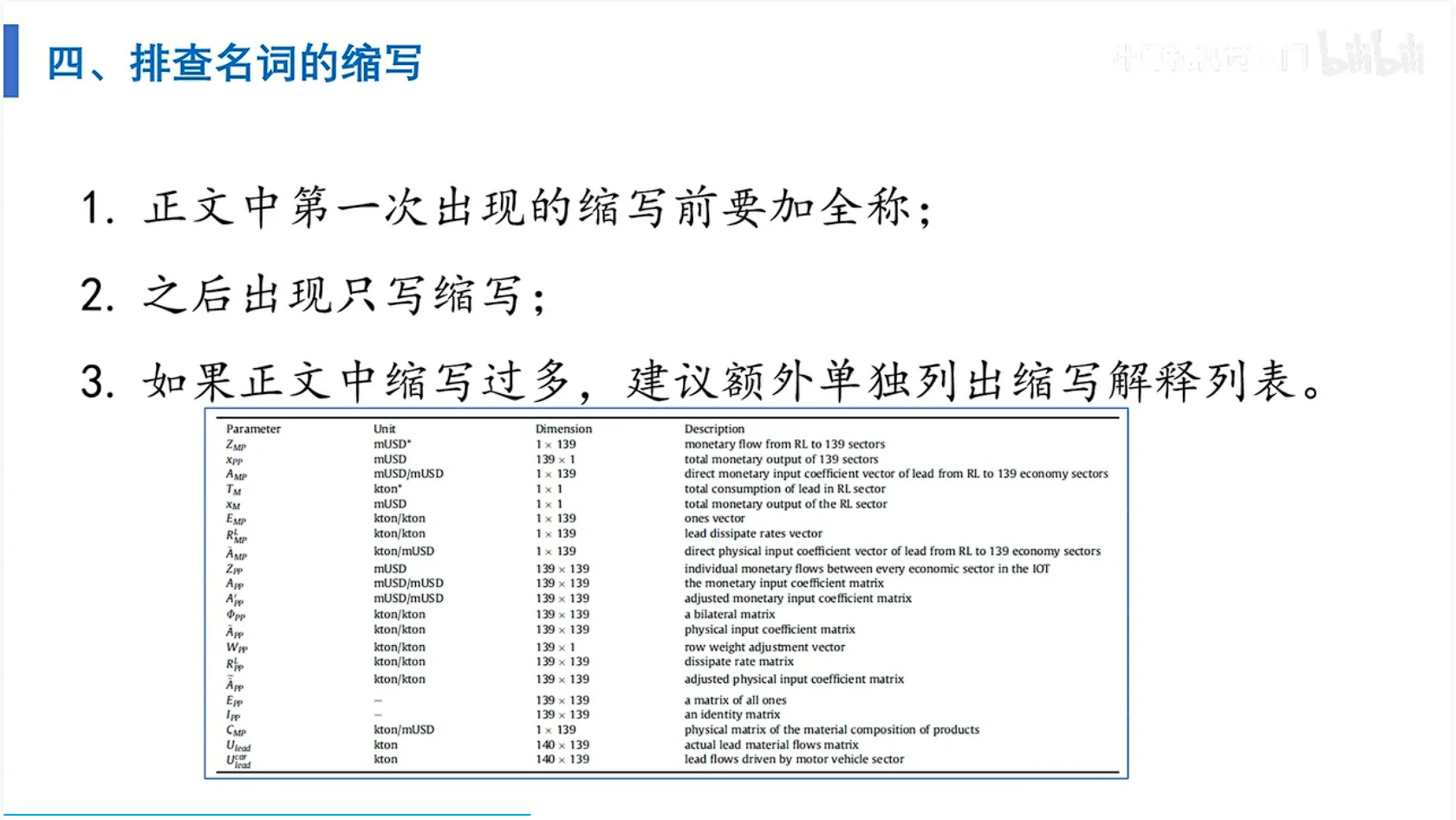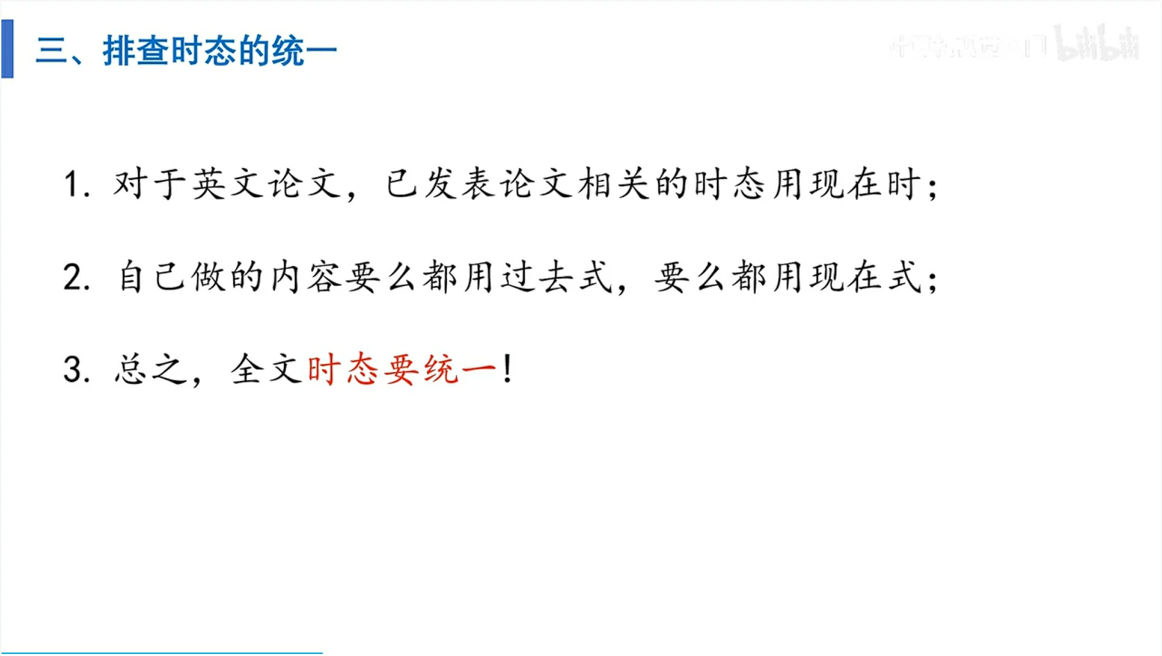 02:58 精炼结论部分,不要超过一页纸 - 论文写作中需要注意的几个问题,包括单位转换、时态统一、名词缩写、序号连贯和引文质量等。