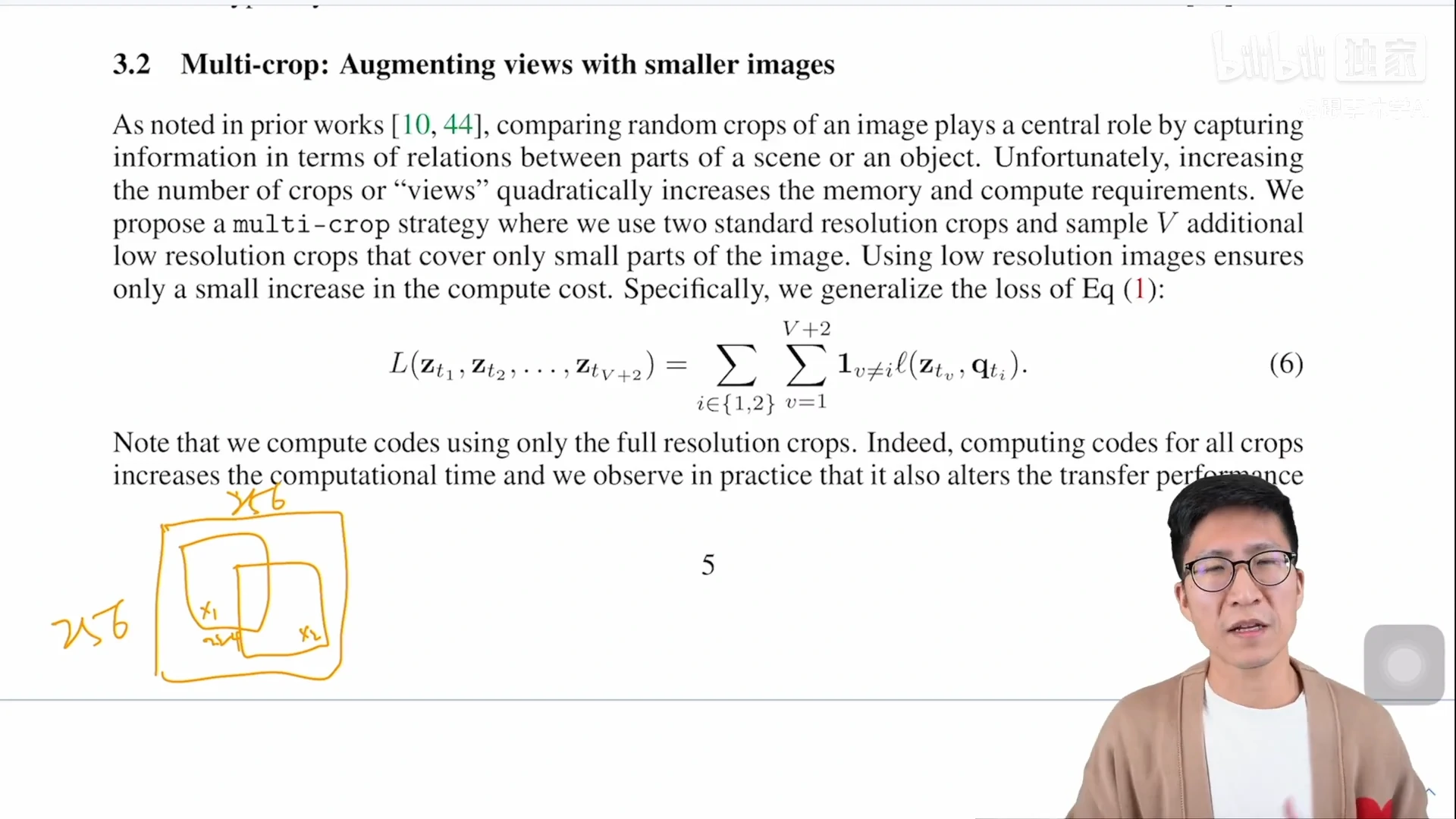 - 那如何能同时使用更多的正样本,而又不增加太多的这个计算成本呢?作者就想到了另外一个办法,就是说做点取舍,原来是取了两个 224 * 224 的 crop,现在把这个 crop 变得小一点,变成 160,也就是说取 2 个 160 的 crop 去争取学全局的特征,然后为了增加正样本的数量,为了学一些局部的特征,再去随机选 4 个小一点 crop,然而这 4 个 crop 的大小是 96 * 96,这样的话,就意味着现在有 6 个视角了,而不是像原来一样只有 2 个视角,所以正样本的数量增多了,但是通过这么一种取舍,整体的计算代价还是差不多的