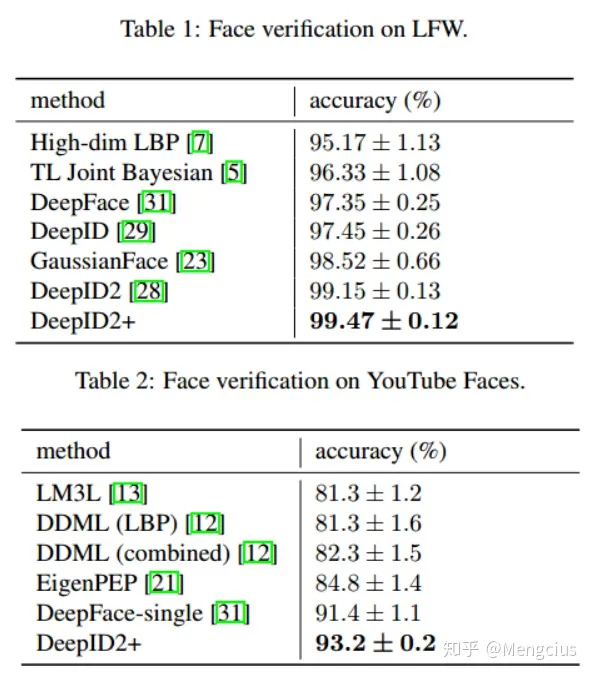 - 神经元适度的稀疏性最大化了深度网络的判别力以及图像之间的距离,甚至在神经反应被二值化后,DeepID2+仍然可以实现高识别准确度。