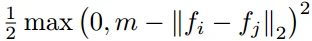 - 如给出一对不同的训练图像,输入到左侧和右侧的相同DeepID2+网络。通过对两幅图像在深度id2网络上的前向传播,得到两个DeepID2特征向量(fi和fj)。然后每个特征向量都被分类到8192个身份中(训练样本共8192个人)的一个,进而生成分类(识别)误差。用的也是基于L2范数的损失函数,类似对比损失。若两张图属同一人,则验证误差为: