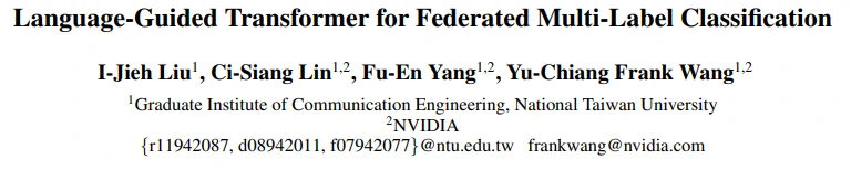 该论文发表于The Thirty-Eighth AAAI Conference on Artificial Intelligence(AAAI-24,人工智能领域顶级会议,CCF-A),题目为《Language-Guided Transformer for Federated Multi-Label Classification》。