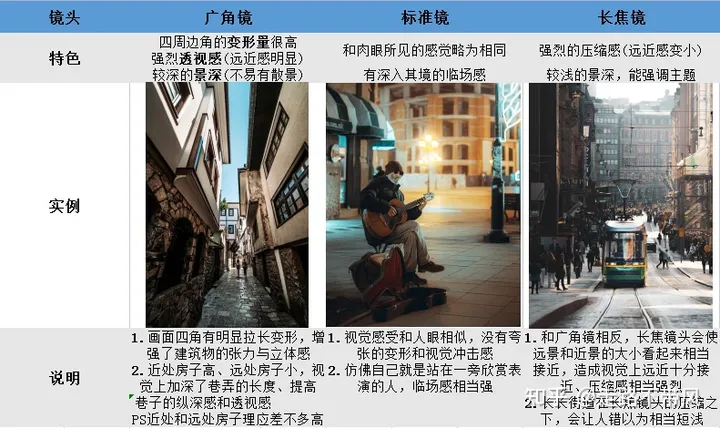 大家可能觉得焦距不同,不是只会影响拍起来的广度和长焦程度而已吗?老实说我们一开始也只是这样认为,但真正熟悉镜头后才知道,不同焦距的镜头还会很大程度影响画面的张力(压缩感、透视感、变形等),而这种特色才是镜头最吸引人的魅力所在,因此我们特别整理以下表格解说: