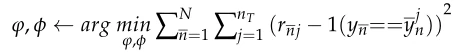 其中,episode表示任务的数量,其中一个任务是带有少量样本的图像分类。nT表示目标集中的样本总数,Yj n表示目标集样本的预测标签值,Yj n表示目标集样本的标签值。B表示目标集中每种类型图像的值,即批号。N表示几个镜头图像分类任务中的样本类别。