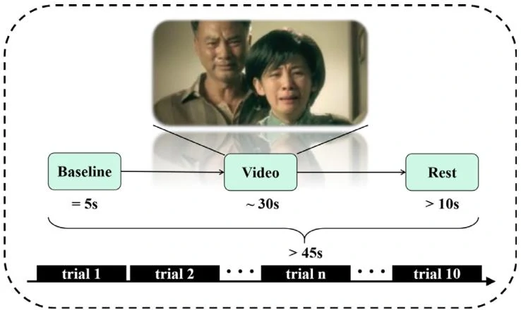 使用SEED和SEED-IV两个公开的情感EEG数据集,以及一个自采的情感EEG数据集进行实验。SEED和SEED-IV数据集分别包含15名被试,自采数据集包含10名健康被试和8名意识障碍患者,自采数据集实验范式如图2所示。