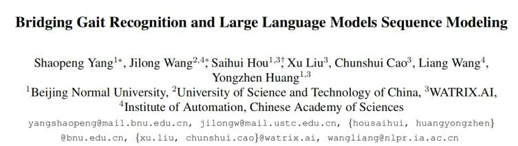 该论文发表于 The IEEE/CVF Conference on Computer Vision and Pattern Recognition 2025(CCF A类),题目为《Bridging Gait Recognition and Large Language Models Sequence Modeling》。