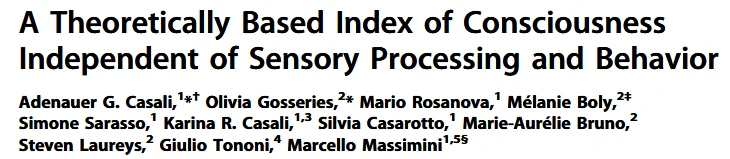 该论文发表于Science Translational Medicine,题目为《A Theoretically Based Index of Consciousness Independent of Sensory Processing and Behavior》。