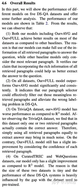 例如,论文[2]的辅助实验包括4.7 Paragraph Selector Performance Analysis、4.8 Performance with different numbers of paragraphs、4.9 Potential improvement、4.10 Case study等,从各方面呈现本文提出方法的特点。
