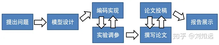 NLP是一门重视实践和应用的领域,创新成果可以是新的算法、任务、应用、数据、发现等,务求一个“新”字,其影响力则取决于它对该领域发展的推动作用。如下图所示,学术研究是一项系统工程,包括多个环节,共同完成对“创新”的追求:问题务求挑战,模型务求创新,实现务求准确,实验务求深入。