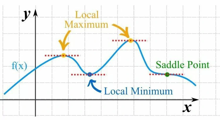 在这里,梯度下降法遇到了鞍点,认为已经找到了极值点,从而终止迭代过程,而这根本不是极值点。