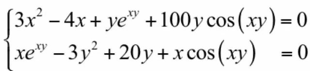我们分别对x和y求偏导数,并令它们为0,得到下面的方程组: