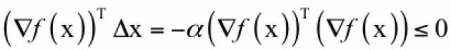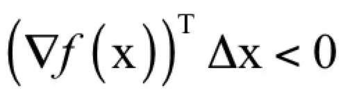 在这里,||·||表示向量的模,θ是向量▽f(x)和Δx的夹角。因为向量的模一定大于等于0,如果: