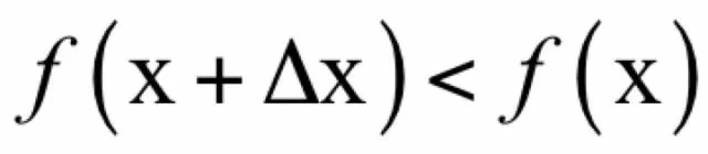 如果在某一点处导数值大于0(+),则函数在此处是增函数,加大x的值函数值会增加,减小x的值(-)函数会减小。相反的,如果在某一点处导数值小于0(-),则函数是减函数,增加x的值函数值会减小(+),减小x的值函数会增加。因此我们可以得出一个结论:如果x的变化很小,并且变化值与导数值反号,则函数值下降。对于一元函数,x的变化只有两个方向,要么朝左,要么朝右。
