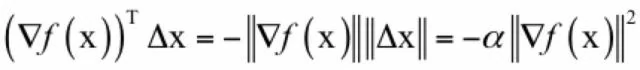 时cosθ有极小值-1,此时梯度和Δx反向,即夹角为180度。因此当向量Δx的模大小一定时,当: