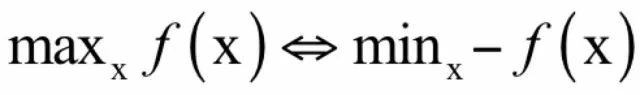 其中x称为优化变量,f称为目标函数。极大值问题可以转换成极小值问题来求解,只需要将目标函数加上负号即可:
