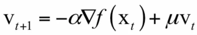 梯度下降法有大量的变种,它们都只利用之前迭代时的梯度信息来构造每次的更新值,下面我们分别进行介绍。最直接的改进是为迭代公式加上动量项,动量项累积了之前的权重更新值,加上此项之后的参数更新公式为: