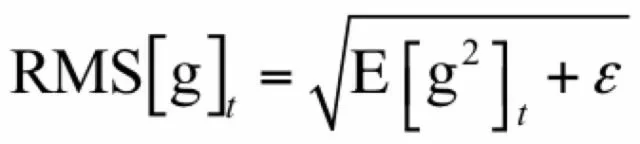 在这里g^2是向量每个元素分别计算平方,后面所有的计算公式都是对向量的每个分量进行。接下来计算如下RMS量: