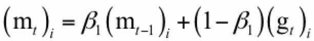 Adam算法[4]全称为adaptive moment estimation,它由梯度项构造了两个向量m和v,它们的初始值为0,更新公式为: