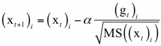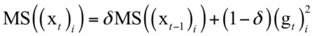 RMSProp算法[5]也是标准梯度下降法的变种,它由梯度值构造一个向量MS,初始化为0,更新公式为: