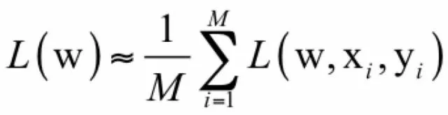 其中 L(w, x_i, y_i) 是对单个训练样本 (x_i, y_i) 的损失函数,w是需要学习的参数。如果训练时每次都用所有样本计算梯度并更新,成本太高,作为改进可以在每次迭代时选取一批样本,将损失函数定义在这些样本上。
