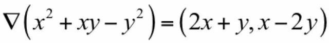 其中▽称为梯度算子,它作用于一个多元函数,得到一个向量。下面是计算函数梯度的一个例子: