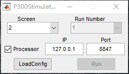 点击处理器界面的Start按钮,之后点击刺激器界面的Run按钮,刺激界面出现,实验模式开始。
