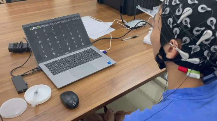 受试者正确佩戴脑电帽并打入医用导电膏降低阻抗