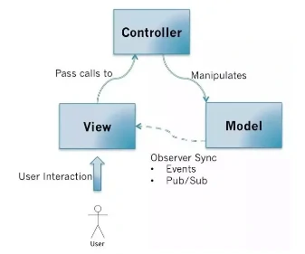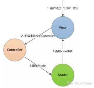 View和Model的同步消息是通过观察者模式进行,而同步操作是由View自己请求Model的数据然后对视图进行更新。