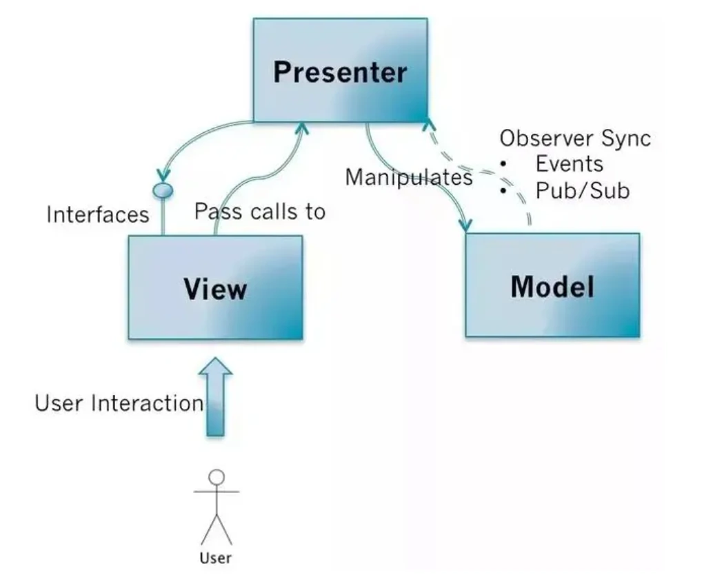 MVP其实是MVC的一种演进版本,它更简单,将MVC中的Controller改为了Presenter,View通过接口与Presenter进行交互,降低耦合,方便进行单元测试。