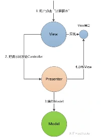 Presenter:作为View与Model交互的中间纽带,处理与用户交互的逻辑。可以把Presenter理解为一个中间层的角色,它接受Model层的数据,并且处理之后传递给View层,还需要处理View层的用户交互等操作。
